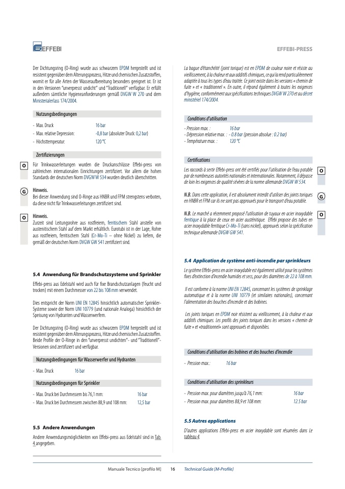 Für Trinkwasserleitungen wurden die Druckanschlüsse Effebi-press von