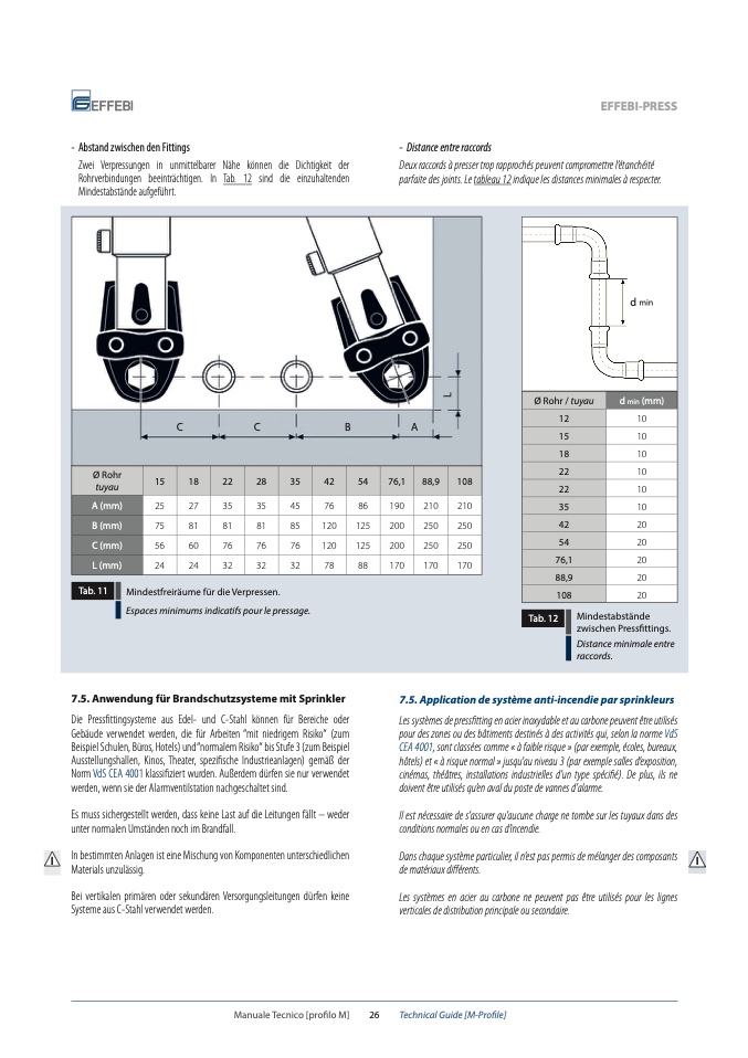 Rohrverbindungen beeinträchtigen. In Tab. 12 sind die einzuhaltenden