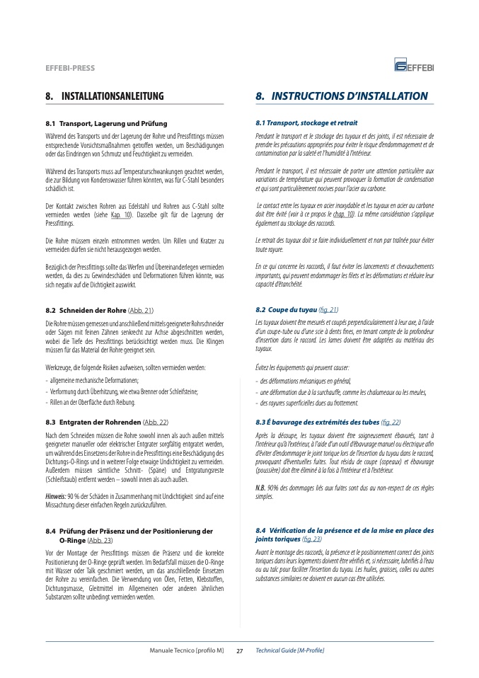Bezüglich der Pressfittings sollte das Werfen und Übereinanderlegen vermieden