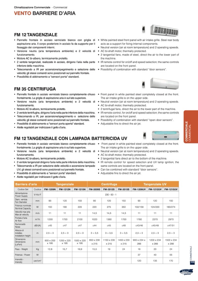 • 2 tangential fans, made of steel, direct the air to the lower part of