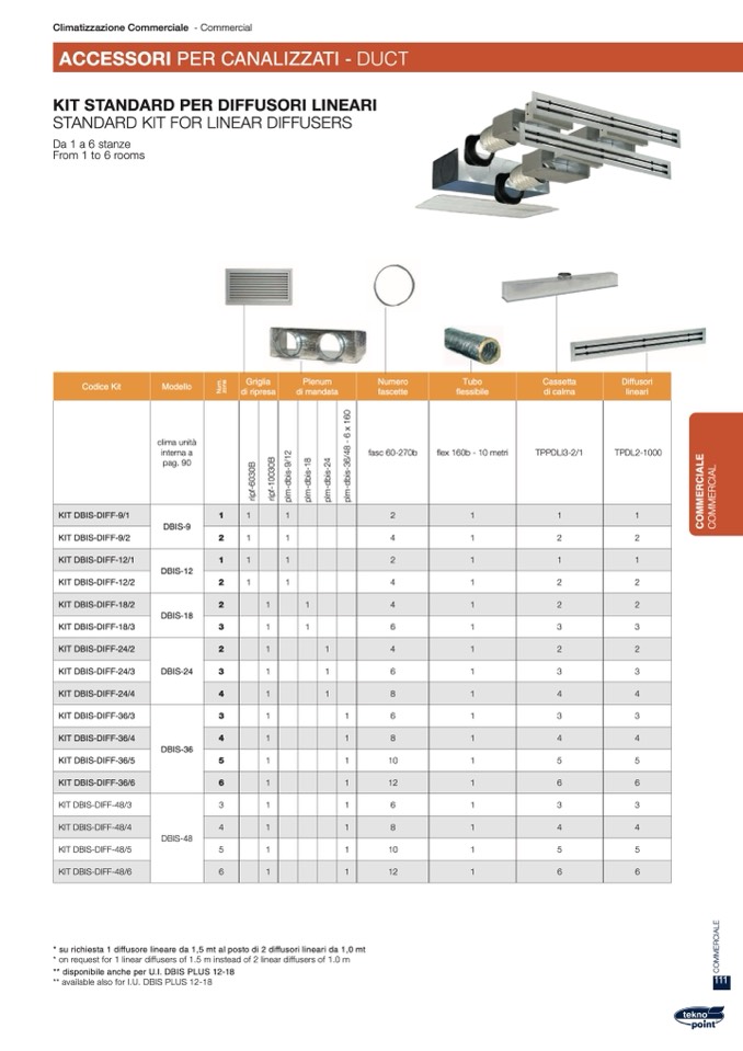 * su richiesta 1 diffusore lineare da 1,5 mt al posto di 2 diffusori lineari da 1,0 mt