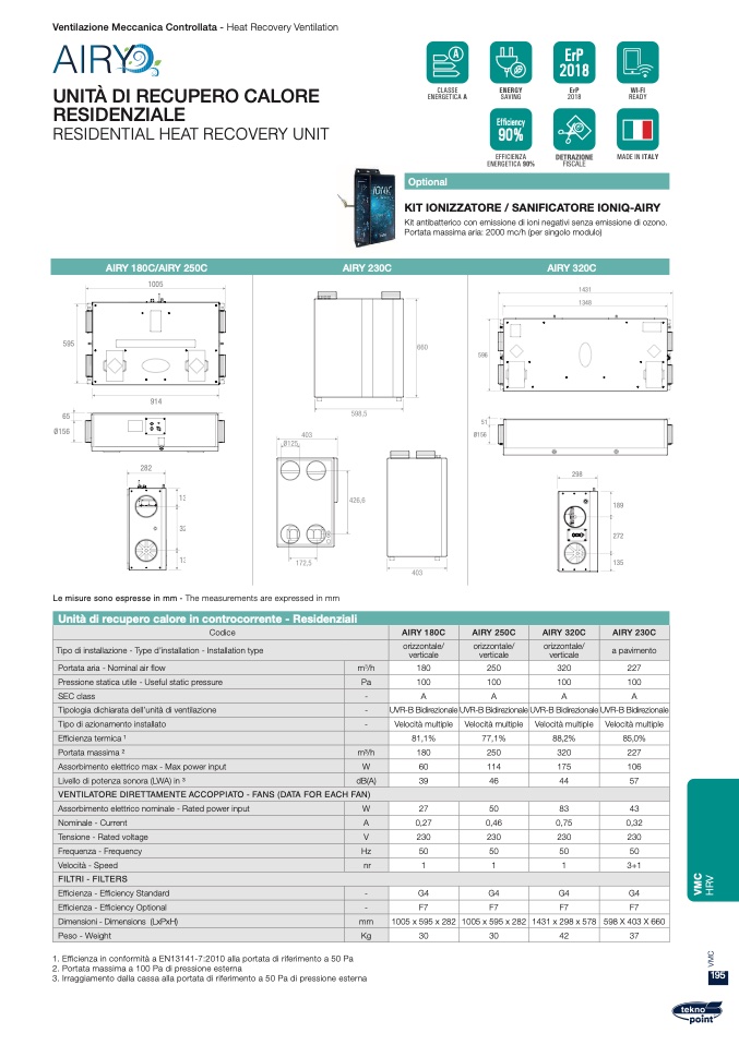 1. Efficienza in conformità a EN13141-7:2010 alla portata di riferimento a 50 Pa