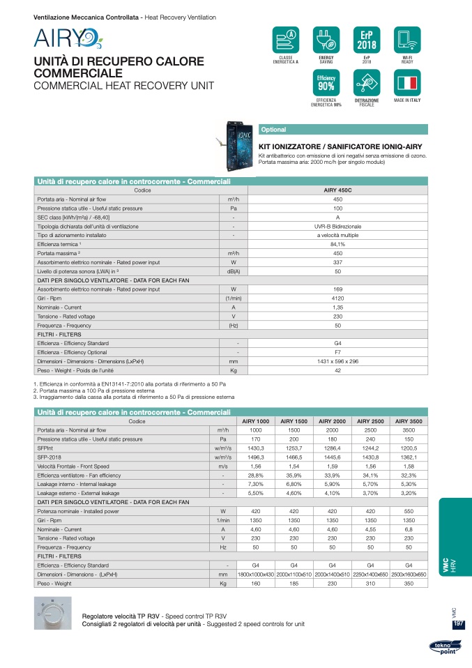 Portata massima aria: 2000 mc/h (per singolo modulo)