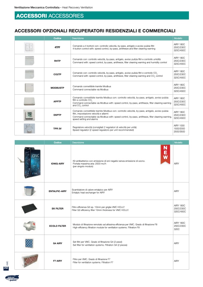 Comando con: controllo velocità, by-pass, antigelo, avviso pulizia filtri e controllo CO