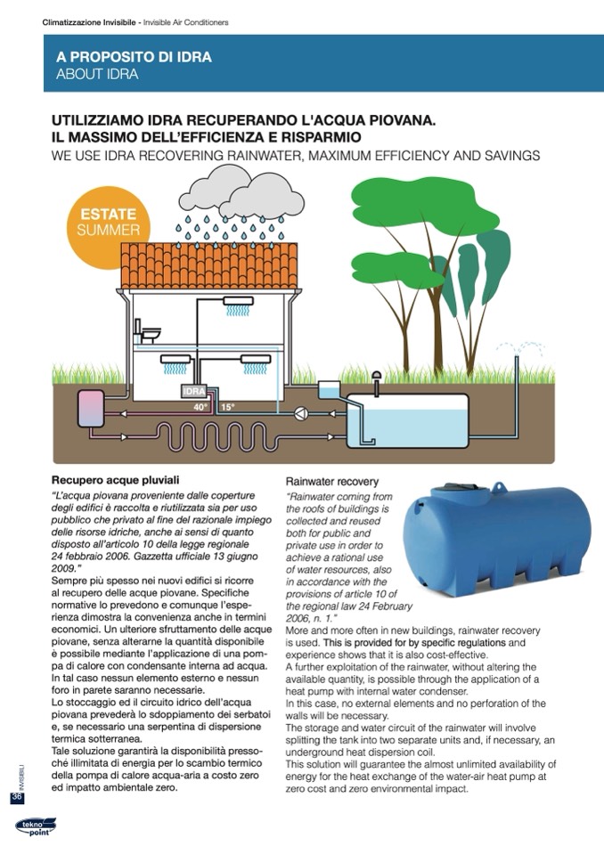 WE USE IDRA RECOVERING RAINWATER, MAXIMUM EFFICIENCY AND SAVINGS