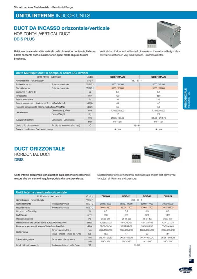 Unità interna orizzontale canalizzabile dalle dimensioni contenute;