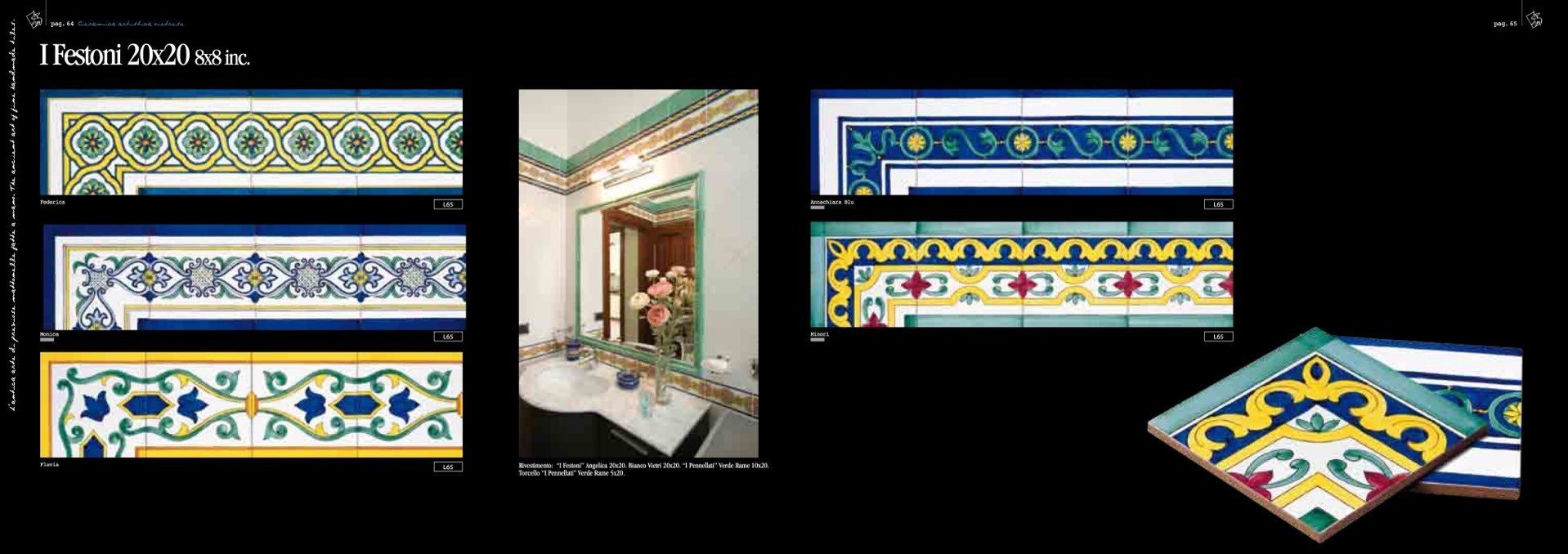 Rivestimento: “I Festoni” Angelica 20x20. Bianco Vietri 20x20. “I Pennellati” Verde Rame 10x20.