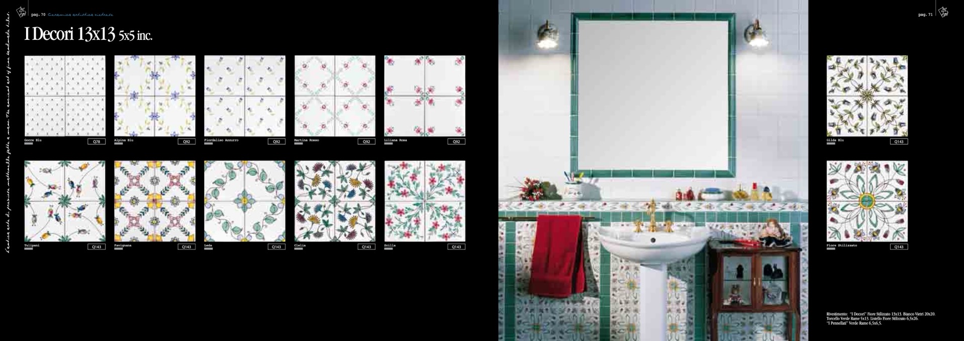 Rivestimento: “I Decori” Fiore Stilizzato 13x13. Bianco Vietri 20x20.