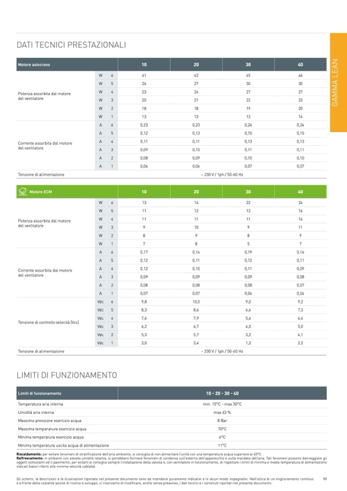 Riscaldamento: per evitare fenomeni di stratificazione dell’aria ambiente, si consiglia di non alimentare l’unità con una temperatura acqua superiore ai 65°C.
