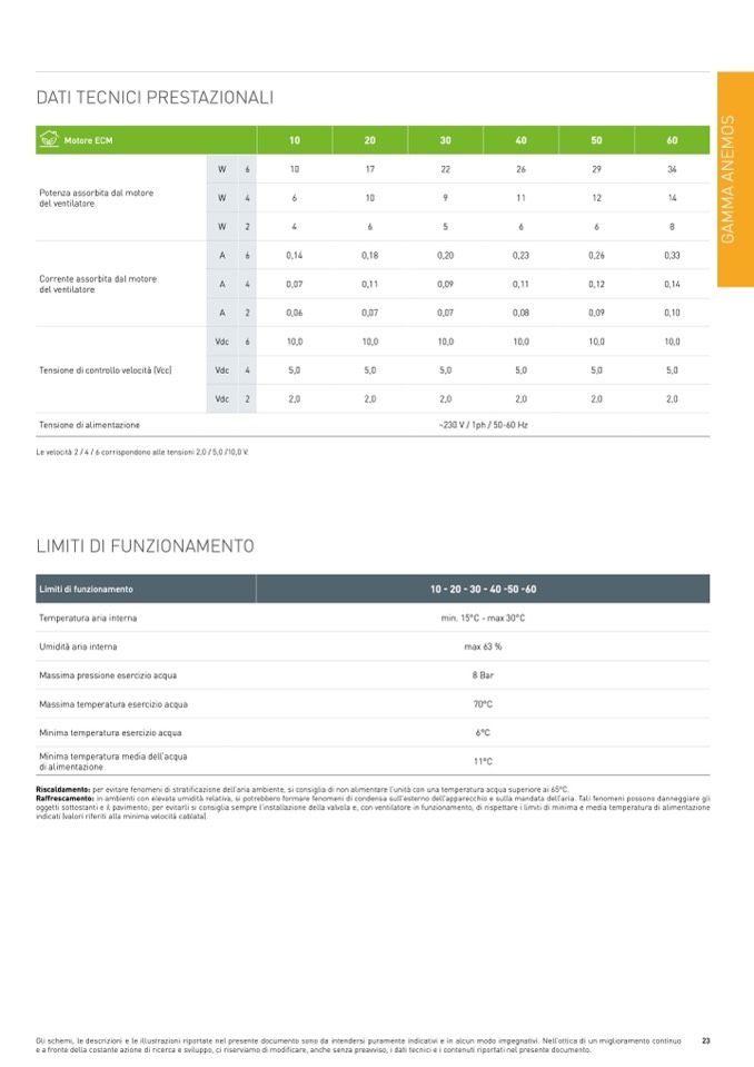 oggetti sottostanti e il pavimento; per evitarli si consiglia sempre l’installazione della valvola e, con ventilatore in funzionamento, di rispettare i limiti di minima e media temperatura di alimentazione