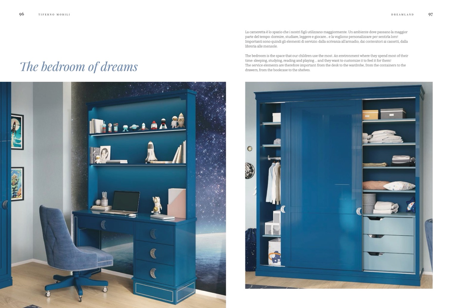 Importanti sono quindi gli elementi di servizio: dalla scrivania all’armadio, dai contenitori ai cassetti, dalla