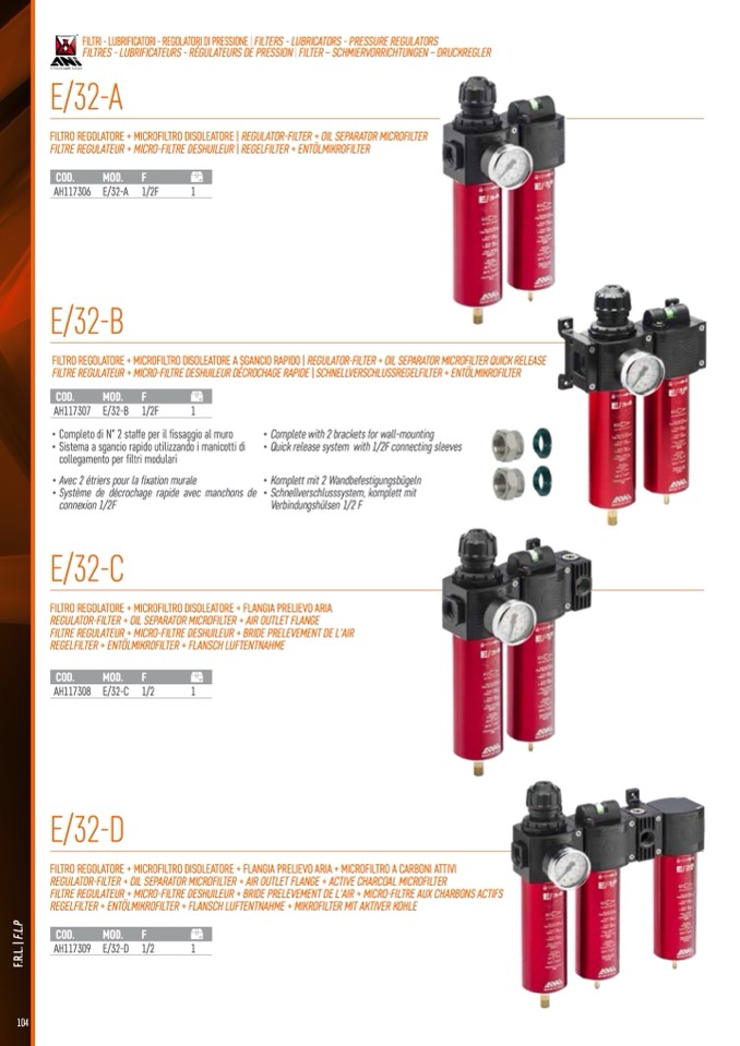 FILTRES - LUBRIFICATEURS - RÉGULATEURS DE PRESSION | FILTER – SCHMIERVORRICHTUNGEN – DRUCKREGLER