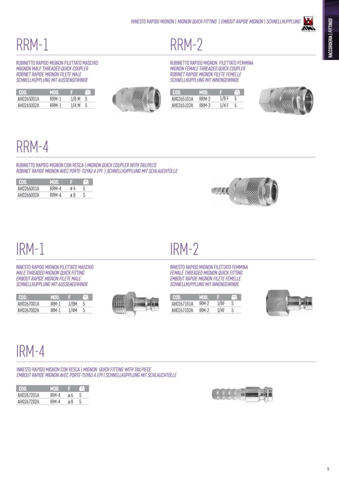 INNESTO RAPIDO MIGNON | MIGNON QUICK FITTING | EMBOUT RAPIDE MIGNON | SCHNELLKUPPLUNG