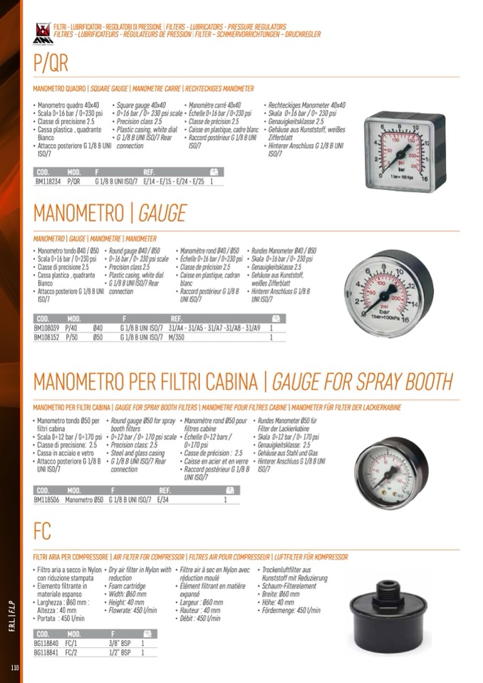 FILTRES - LUBRIFICATEURS - RÉGULATEURS DE PRESSION | FILTER – SCHMIERVORRICHTUNGEN – DRUCKREGLER