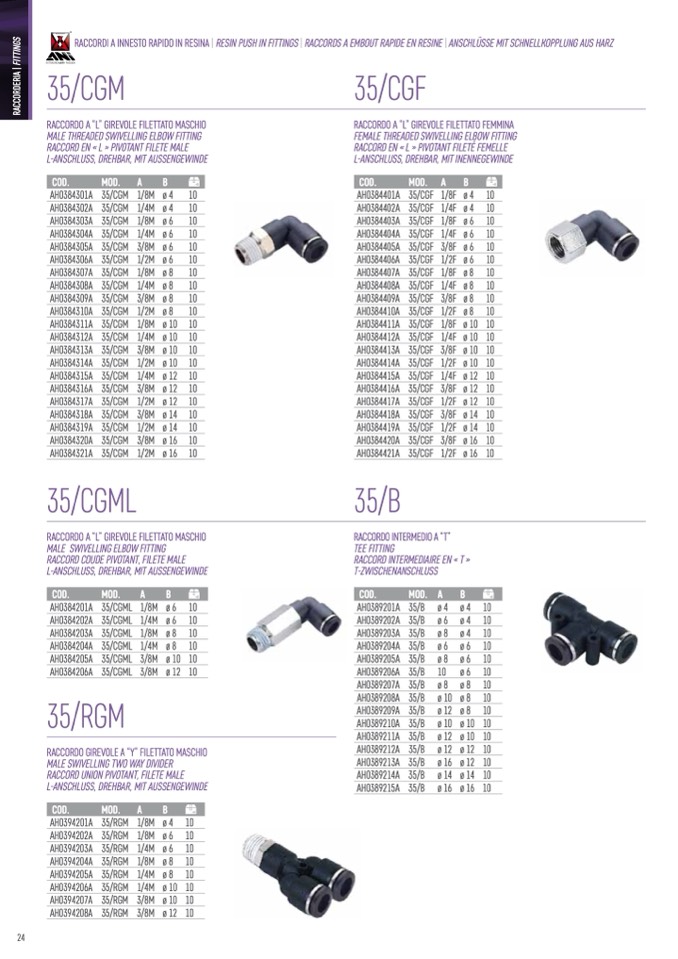 RACCORDI A INNESTO RAPIDO IN RESINA | RESIN PUSH IN FITTINGS | RACCORDS A EMBOUT RAPIDE EN RESINE | ANSCHLÜSSE MIT SCHNELLKOPPLUNG AUS HARZ