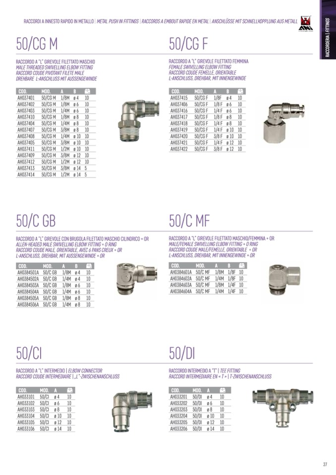 RACCORDI A INNESTO RAPIDO IN METALLO | METAL PUSH IN FITTINGS | RACCORDS A EMBOUT RAPIDE EN METAL | ANSCHLÜSSE MIT SCHNELLKOPPLUNG AUS METALL