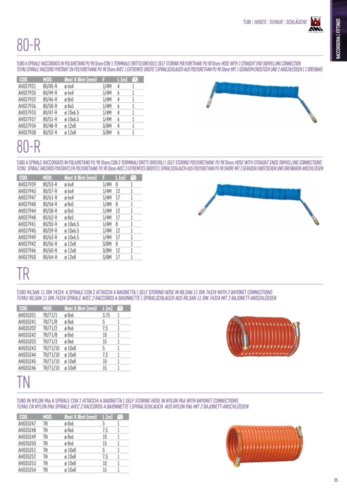 TUBI | HOSES | TUYAUX | SCHLÄUCHE