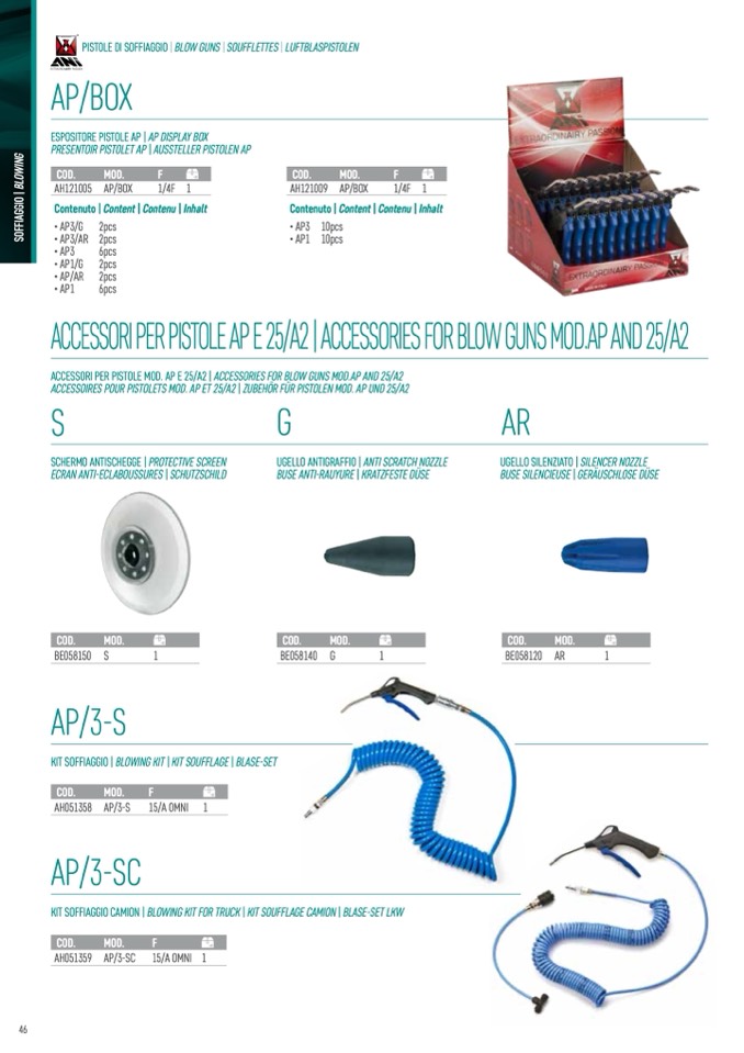 ACCESSORI PER PISTOLE MOD. AP E 25/A2 | ACCESSORIES FOR BLOW GUNS MOD.AP AND 25/A2