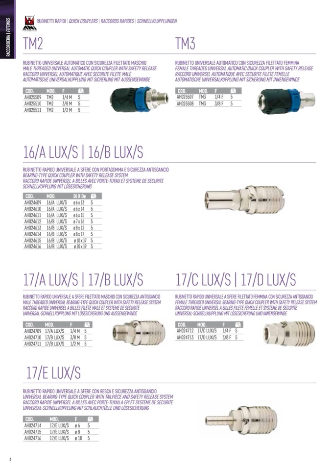 RUBINETTI RAPIDI | QUICK COUPLERS | RACCORDS RAPIDES | SCHNELLKLUPPLUNGEN