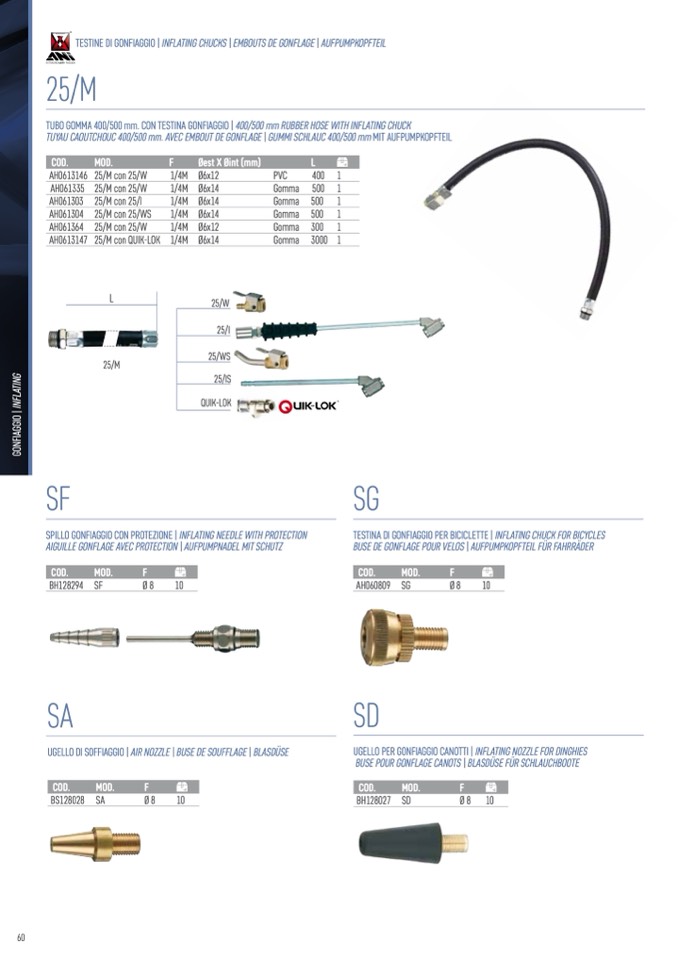 TESTINE DI GONFIAGGIO | INFLATING CHUCKS | EMBOUTS DE GONFLAGE | AUFPUMPKOPFTEIL