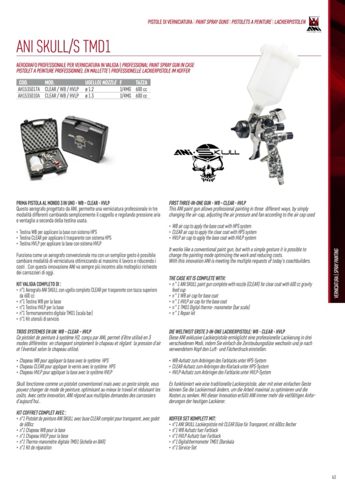 • n ° 1 ANI SKULL paint gun complete with nozzle (CLEAR) for clear coat with 600 cc gravity