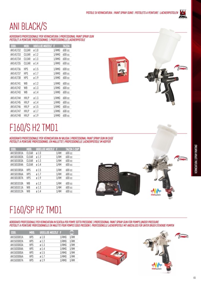 PISTOLE DI VERNICIATURA | PAINT SPRAY GUNS | PISTOLETS A PEINTURE | LACKIERPISTOLEN