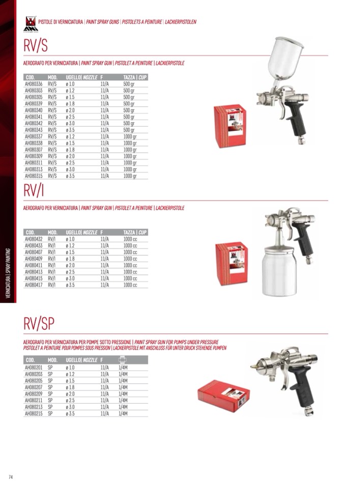 PISTOLE DI VERNICIATURA | PAINT SPRAY GUNS | PISTOLETS A PEINTURE | LACKIERPISTOLEN