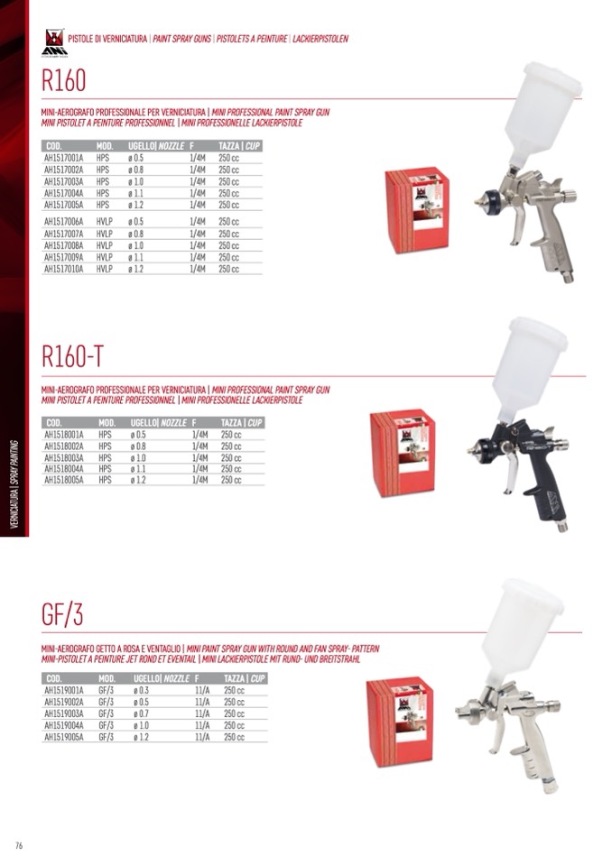 PISTOLE DI VERNICIATURA | PAINT SPRAY GUNS | PISTOLETS A PEINTURE | LACKIERPISTOLEN