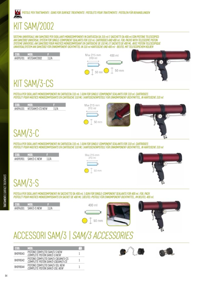 ANI SAM/2002 UNIVERSAL SYSTEM FOR SINGLE-COMPONENT SEALANTS FOR 310 ml. CARTRIDGES AND 400 ml. FOIL PACKS WITH TELESCOPIC PISTON