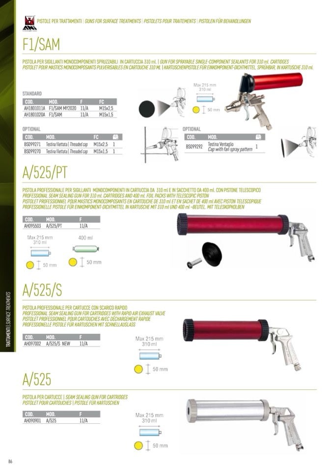 PISTOLE PER TRATTAMENTI | GUNS FOR SURFACE TREATMENTS | PISTOLETS POUR TRAITEMENTS | PISTOLEN FÜR BEHANDLUNGEN