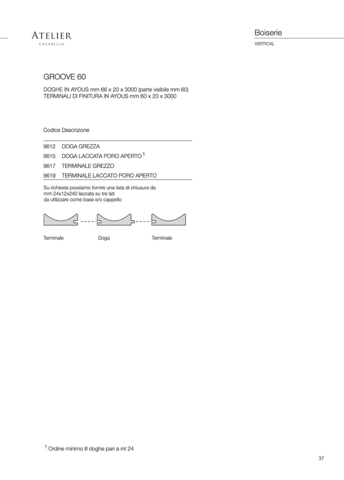 1 Ordine minimo 8 doghe pari a ml 24