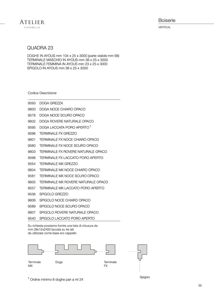 1 Ordine minimo 8 doghe pari a ml 24