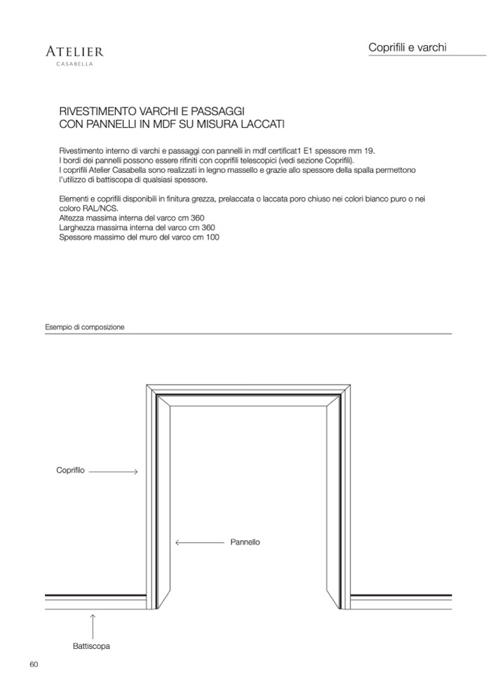 I coprifili Atelier Casabella sono realizzati in legno massello e grazie allo spessore della spalla permettono
