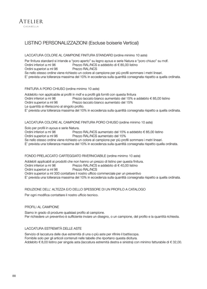 LISTINO PERSONALIZZAZIONI (Escluse boiserie Vertical)
