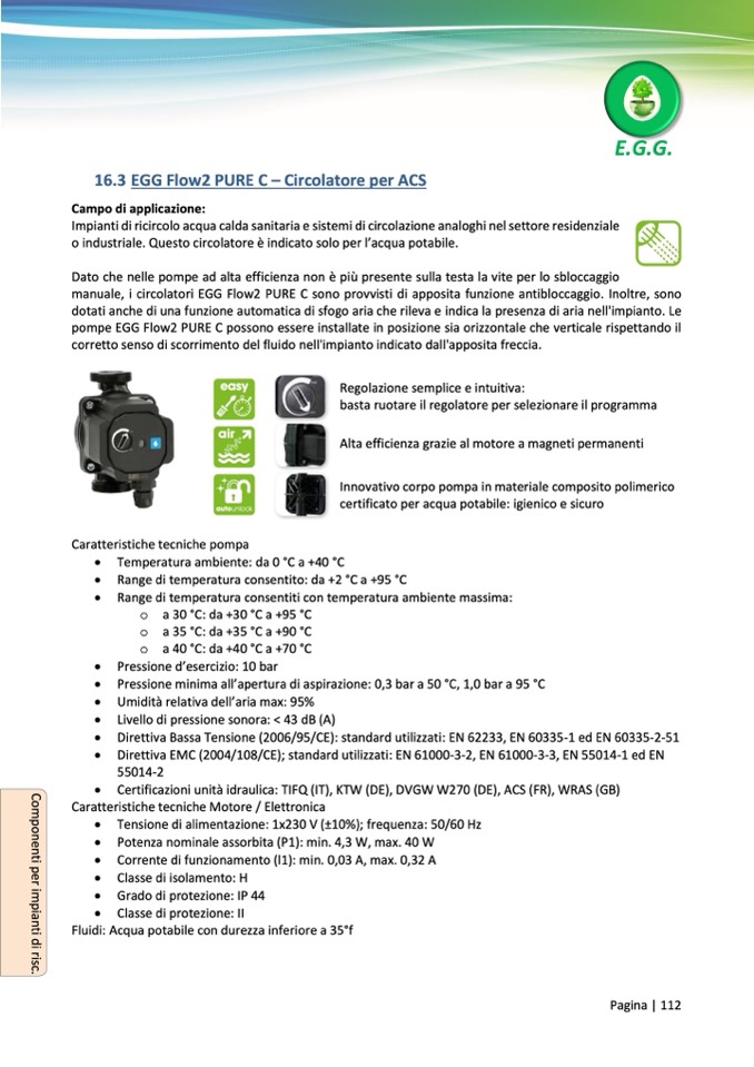 manuale, i circolatori EGG Flow2 PURE C sono provvisti di apposita funzione antibloccaggio. Inoltre, sono