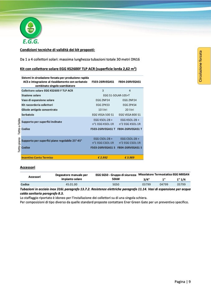 Kit con collettore solare EGG KS2600F TLP ACR (superficie lorda 2,62 m