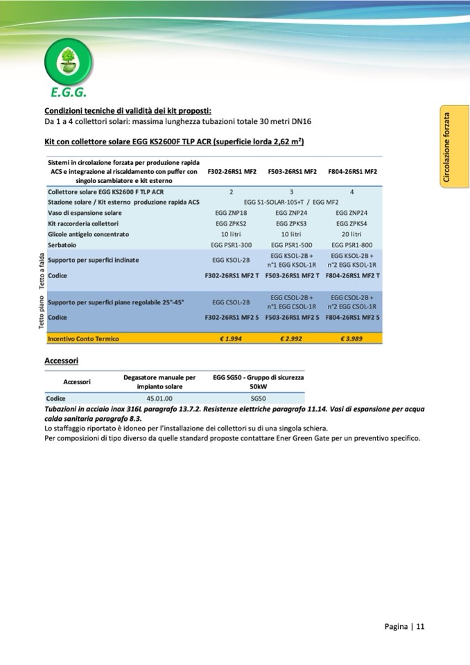 Kit con collettore solare EGG KS2600F TLP ACR (superficie lorda 2,62 m