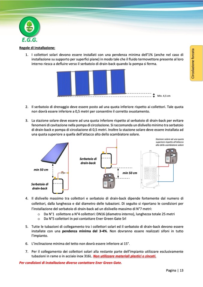 di drain-back e pompa di circolazione di 0,5 metri. Inoltre la stazione solare deve essere installata ad