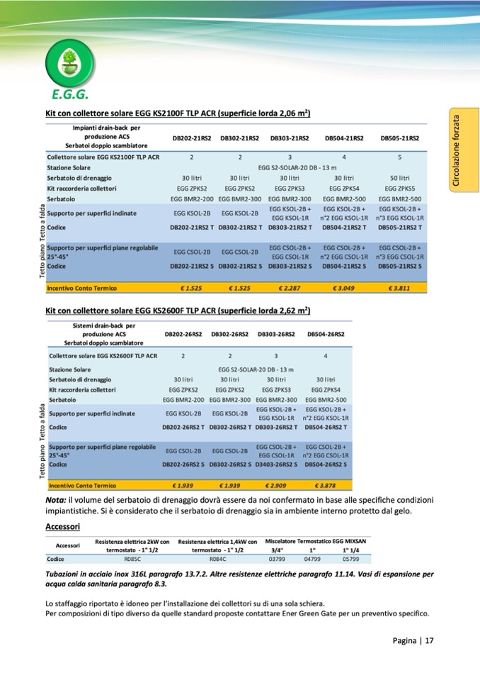 Kit con collettore solare EGG KS2600F TLP ACR (superficie lorda 2,62 m