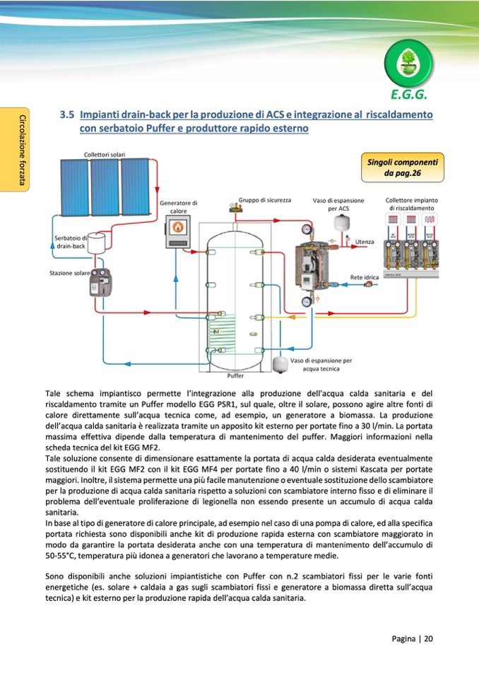 riscaldamento tramite un Puffer modello EGG PSR1, sul quale, oltre il solare, possono agire altre fonti di