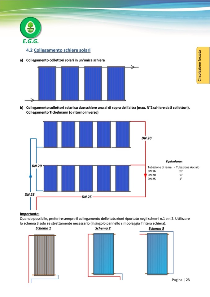 Collegamento collettori solari su due schiere una al di sopra dell’altra (max. N°2 schiere da 8 collettori).