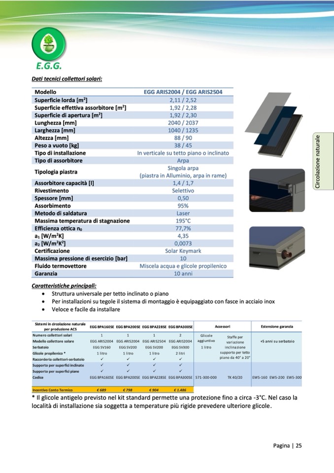 Dati tecnici collettori solari: