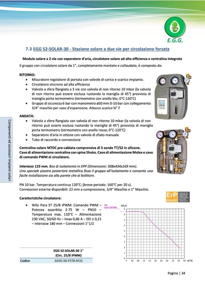 Il gruppo con circolatore solare da 1”, completamente montato e collaudato, è composto da: