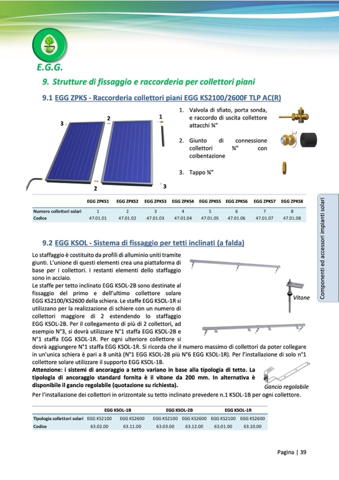 dovrà aggiungere N°1 staffa EGG KSOL-1R. Si ricorda che il numero massimo di collettori da poter collegare