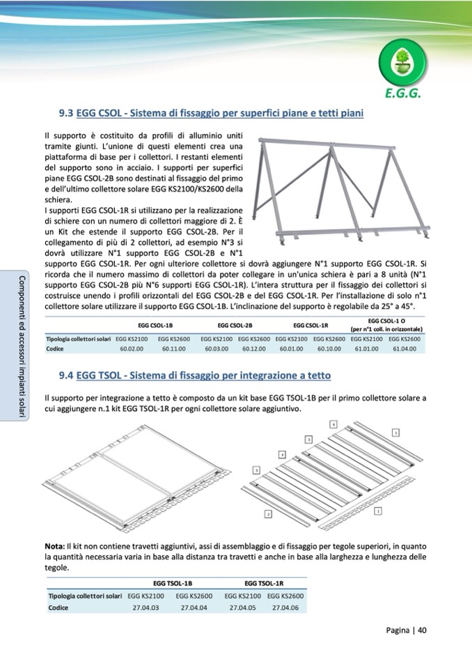 collettore solare utilizzare il supporto EGG CSOL-1B. L’inclinazione del supporto è regolabile da 25° a 45°.