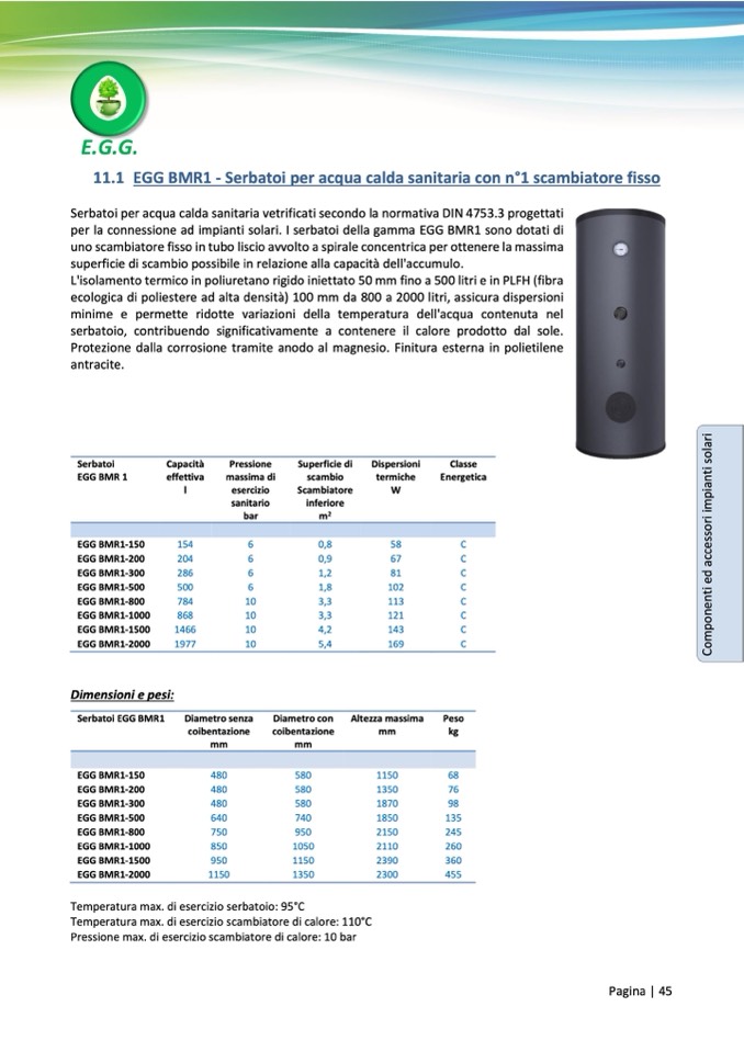 per la connessione ad impianti solari. I serbatoi della gamma EGG BMR1 sono dotati di