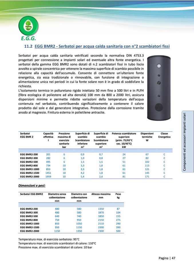 serbatoi della gamma EGG BMR2 sono dotati di n.2 scambiatori fissi in tubo liscio