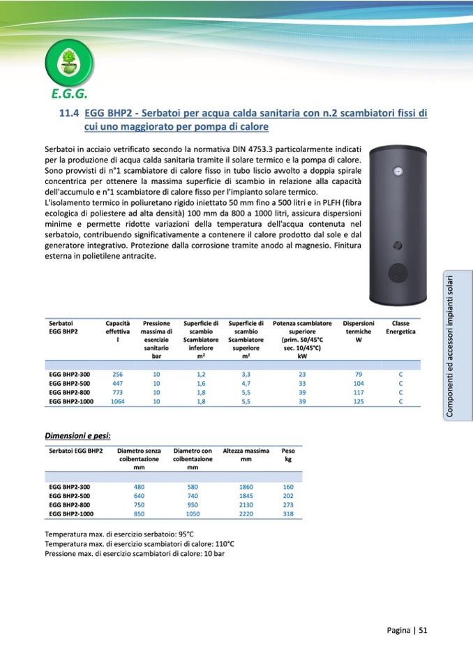dell'accumulo e n°1 scambiatore di calore fisso per l’impianto solare termico.