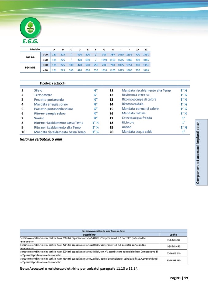 Nota: Accessori e resistenze elettriche per serbatoi paragrafo 11.13 e 11.14.