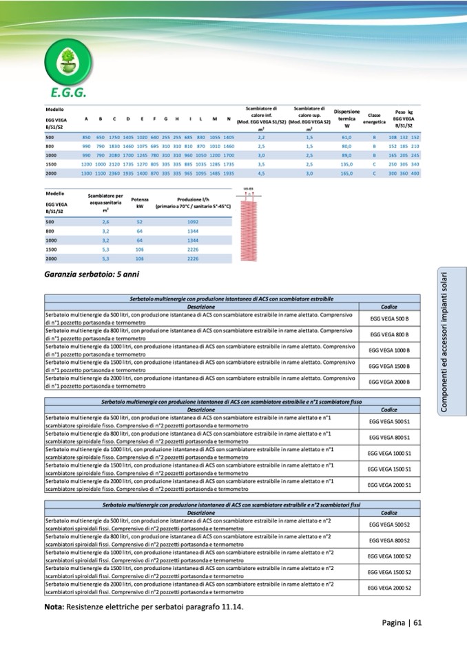 Nota: Resistenze elettriche per serbatoi paragrafo 11.14.